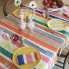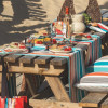 La nappe donne le ton. Pour une table printanière, choisissez des teintes qui rappellent la saison : le vert bouteille évoque la fraîcheur des feuillages, le bleu turquoise fait écho à la clarté du ciel, le laurier rose, l'ananas et le pêche apportent de la douceur et du peps. Les collections Corda, Mauléon ou Garlin de la nouvelle collection 2025 offrent une belle variété de nuances pour adapter l’ambiance à votre style.