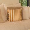 En version Curry, la rayure gagne en douceur et en chaleur. Le coloris, lumineux sans être vif, évoque la lumière du Sud, les intérieurs baignés de soleil et les matières naturelles patinées par le temps. C’est une toile qui structure l’espace tout en l’adoucissant.
