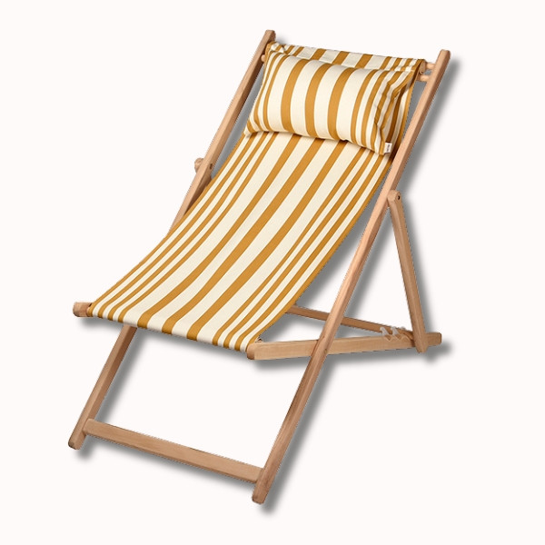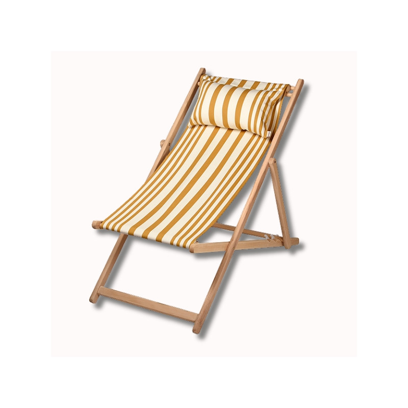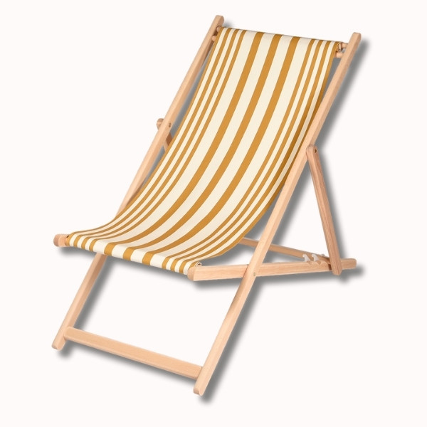La chilienne complète Artiga avec coussin paresseux Adour Curry est une invitation à la détente, inspirée de l’univers Les Pins Salés. Son design épuré, à fond écru rehaussé de rayures curry, évoque l’esprit maison de vacances et les intérieurs lumineux du Sud-Ouest. Composée d’une toile 100% coton, d’une structure en bois de hêtre naturel et d’un coussin paresseux assorti, elle allie confort, élégance naturelle et savoir-faire français pour sublimer vos moments de repos en extérieur.