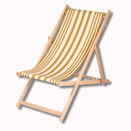 La structure en bois de hêtre naturel garantit robustesse et élégance. Ergonomique et pliable, la chilienne mesure 132 x 56 x 4 cm pliée, pour un rangement facile, avec une charge maximale conseillée de 100 kg. Une lasure incolore annuelle est recommandée pour protéger le bois.