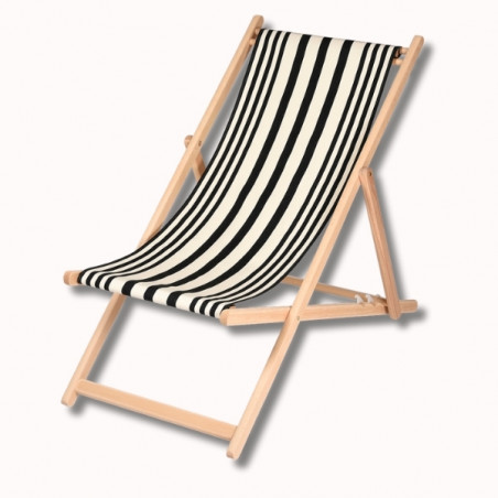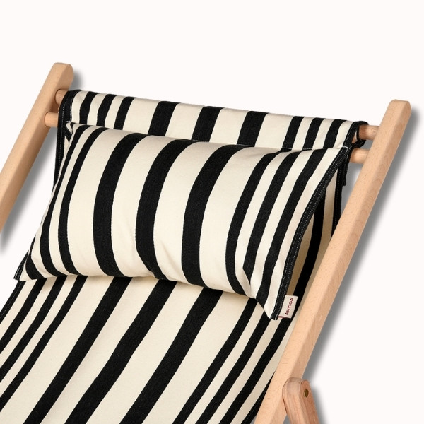 La chilienne complète Artiga avec coussin paresseux en toile Adour Noir propose une vision épurée et élégante de la détente en extérieur, inspirée de l’univers Les Pins Salés. Sa toile écrue, rythmée par des rayures noires fines et larges, crée un contraste graphique fort, à la fois moderne et intemporel, idéal pour le jardin, la terrasse ou le bord de piscine.