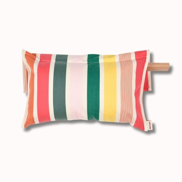 Le coussin paresseux Garlin Melon, en toile transat 100 % coton garnie de ouate, offre un soutien confortable pour la nuque et la tête. Polyvalent, il peut aussi servir de coussin d’appoint et est lavable en machine à 30 °C.
