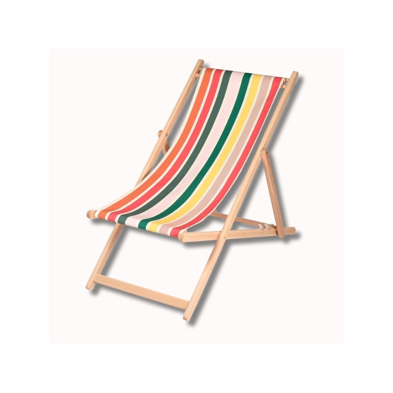 La structure en bois de hêtre naturel assure robustesse et élégance. Ergonomique et pliable, la chilienne est facile à transporter et à ranger, avec une charge maximale conseillée de 100 kg. Une lasure incolore annuelle est recommandée pour protéger le bois.