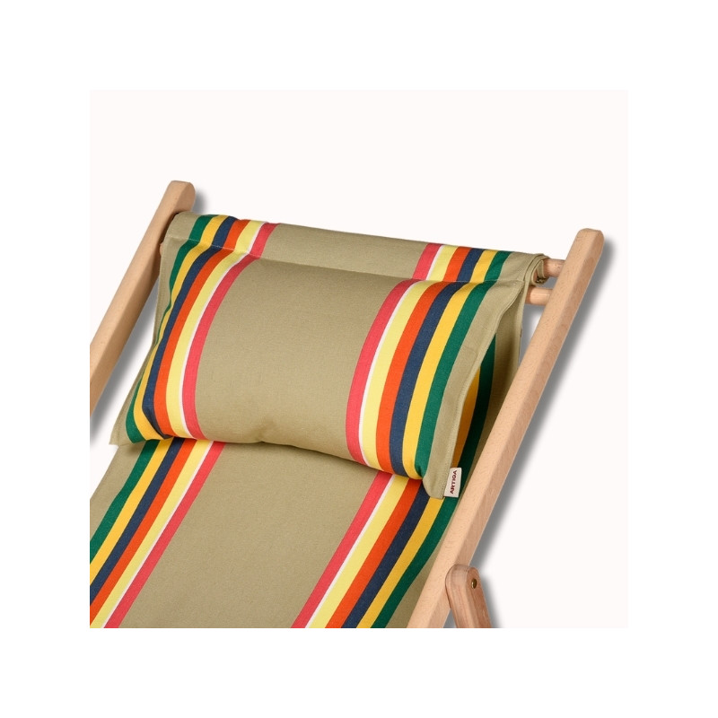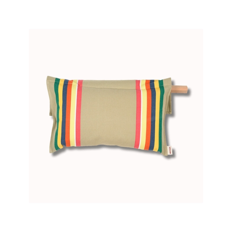 Le coussin paresseux assorti, en toile transat 100 % coton garnie de ouate, offre un soutien moelleux pour la tête et la nuque. Avec ses dimensions de 40 x 40 x 10 cm, il peut aussi servir de coussin d’appoint et est lavable en machine à 30 °C.