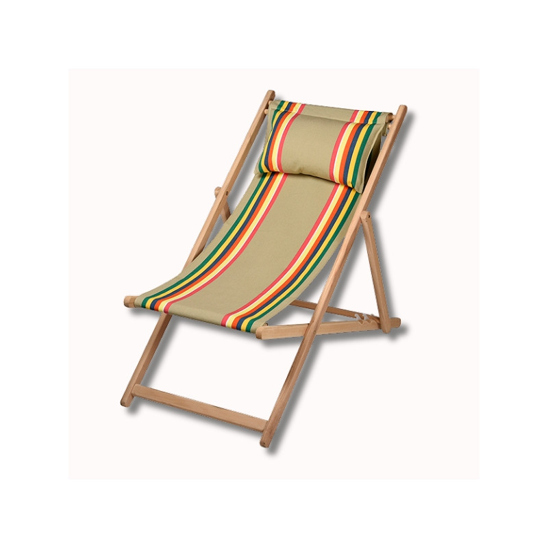La structure en bois de hêtre naturel garantit robustesse et élégance. Ergonomique et pliable, la chilienne mesure 118 x 42 cm ouverte et 132 x 56 x 4 cm pliée, avec une charge maximale conseillée de 100 kg. Une lasure incolore annuelle est recommandée pour protéger le bois.