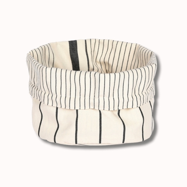 Confectionnée en 100 % coton avec un cordon de serrage, cette corbeille à pain est réalisée à partir de notre toile Sauvelade écru, reconnaissable à ses rayures fines et contrastées. Son design sobre et équilibré s’intègre parfaitement à tous les univers de cuisine et de salle à manger, du plus traditionnel au plus contemporain.