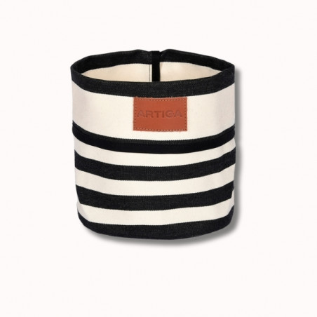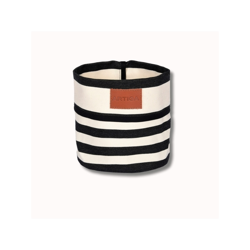 Confectionnée à partir de notre toile Adour Noir, cette corbeille met en valeur les rayures graphiques dans un contraste noir et écru intemporel. Tissée en 100 % coton à partir de fils teints, la toile offre une excellente tenue, une belle structure et une durabilité adaptée à un usage quotidien.