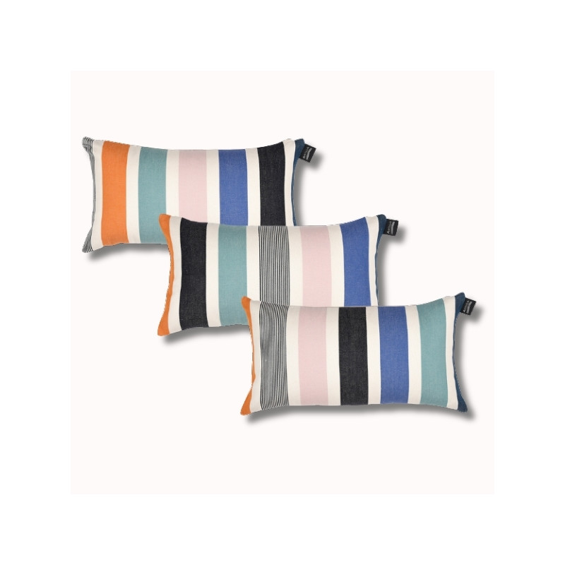 Les coussins Garlin rectangulaires petits modèles 25 x 45 cm, sont en tissu naturel 100% coton issu de l'agriculture biologique, créés et confectionnés dans notre atelier situé dans le Sud-Ouest, dans le respect des tissages traditionnels basques.