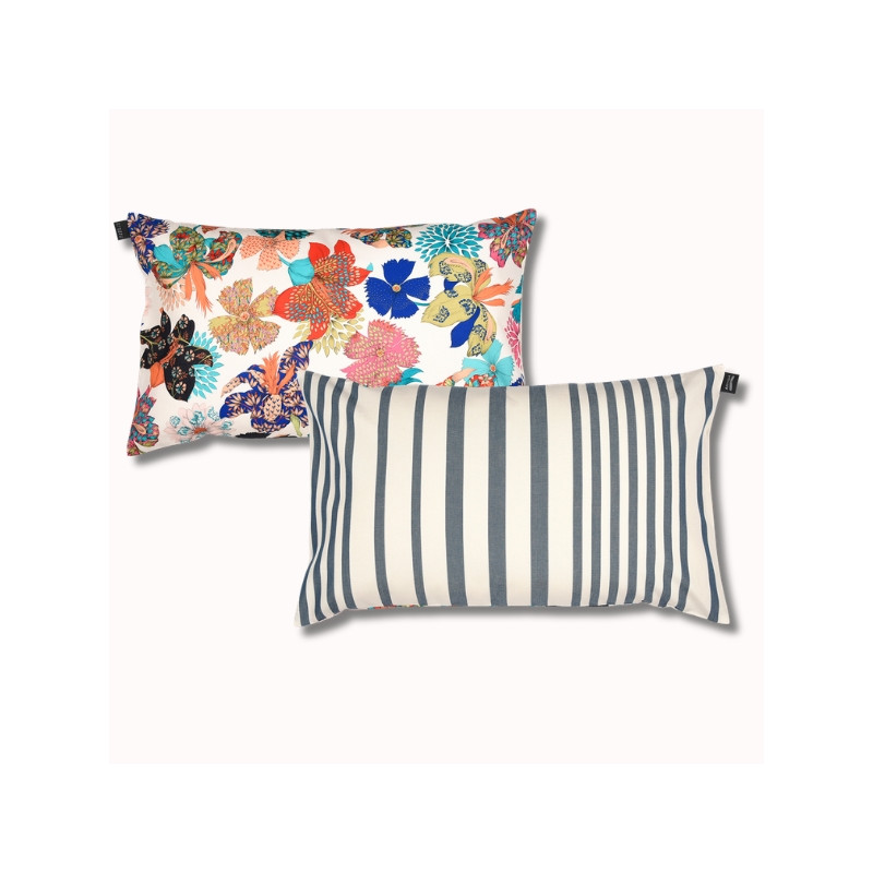 Double face : une face en toile Adour inspirée de la Riviera italienne, une face florale japonisante.