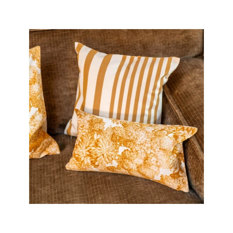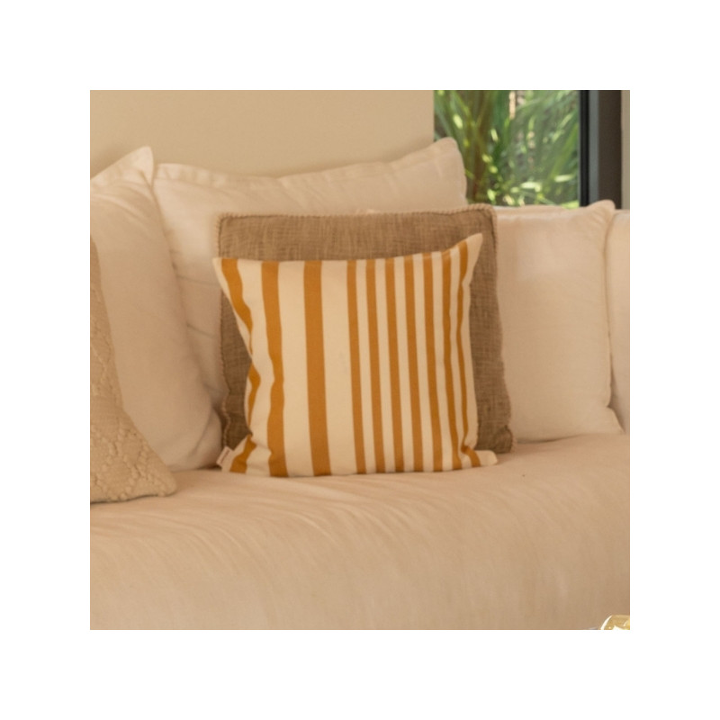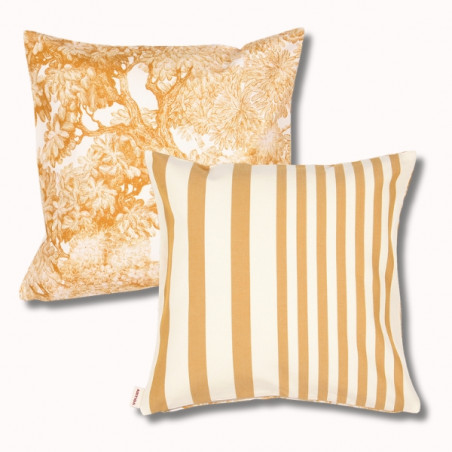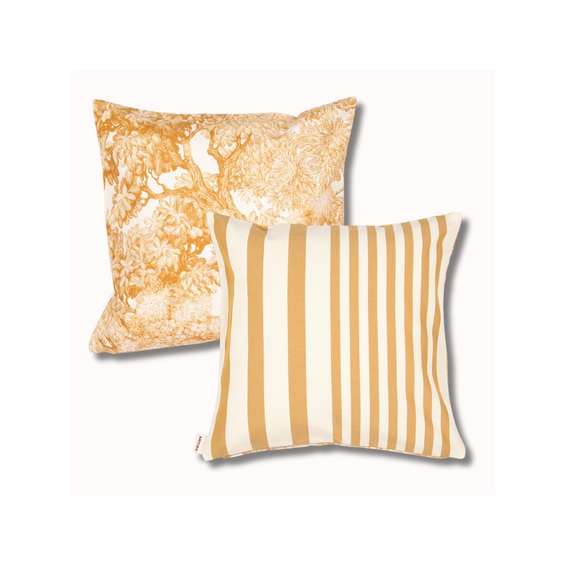 Le coussin biface 40x40 cm Adour Curry / Tree for Two Curry est une pièce décorative raffinée qui mêle harmonieusement rayure d'inspiration basque et motif illustré. Pensé pour apporter chaleur et douceur à votre intérieur, il s’inscrit naturellement dans l’univers Les Pins Salés, inspiré des maisons de vacances lumineuses et apaisantes.