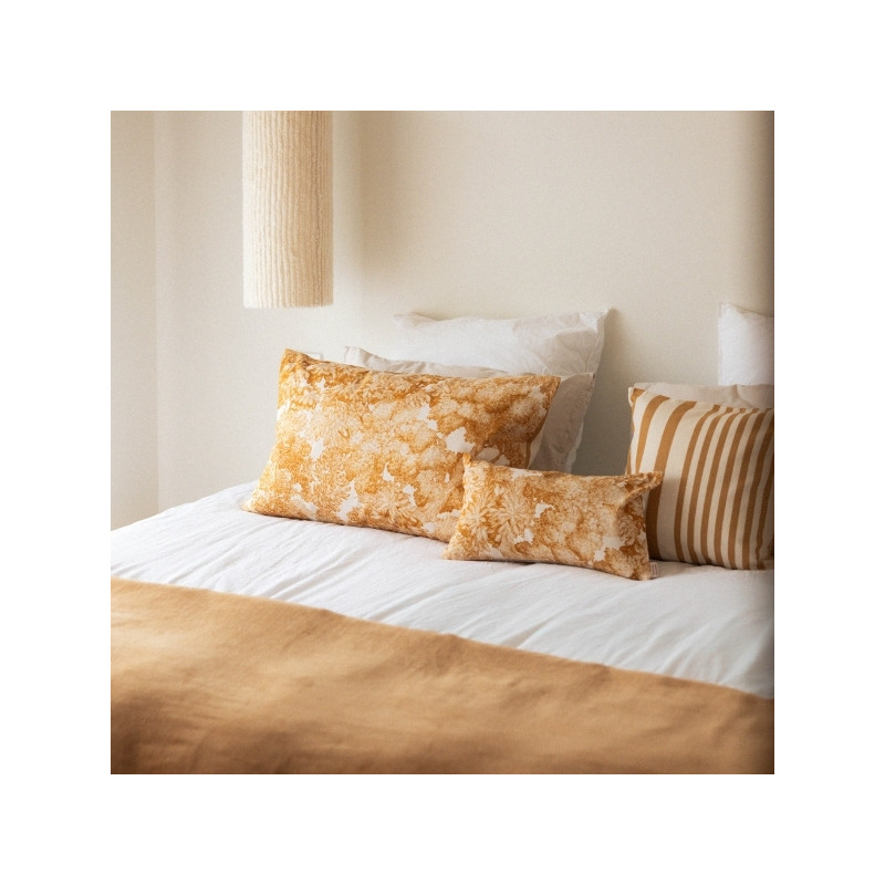 Le coussin biface 45x25 cm Adour Curry / Tree for Two Curry s’inscrit dans l’univers Les Pins Salés, inspiré des maisons de vacances lumineuses et apaisantes. Il associe sobriété graphique et poésie végétale pour une décoration chaleureuse et intemporelle.