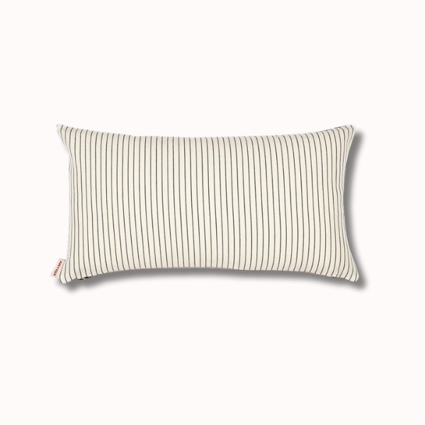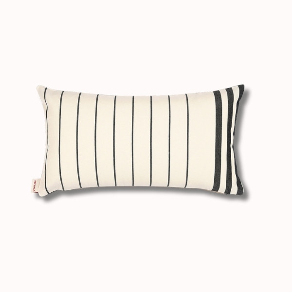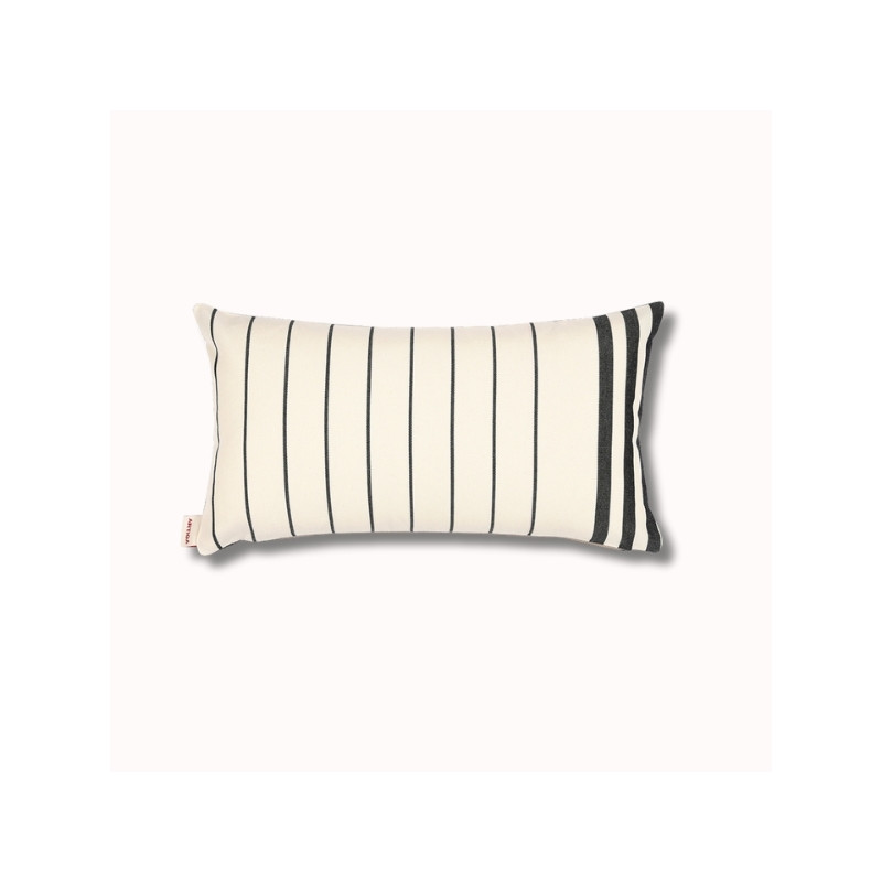 Sur une face, la toile d'inspiration basque Sauvelade écru séduit par ses rayures fines et graphiques, sobres et intemporelles. Elle apporte une structure visuelle élégante, parfaite pour les intérieurs contemporains ou authentiques.