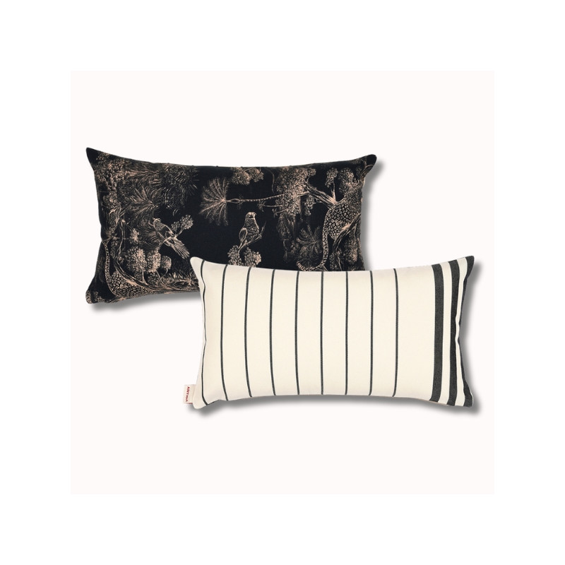 Grâce à son design biface, ce coussin vous permet de changer d’ambiance selon vos envies : minimaliste et graphique côté Sauvelade, plus décoratif et narratif côté Animalia. Il s’associe parfaitement aux autres coussins et accessoires de la collection Artiga x Thevenon pour une décoration harmonieuse et cohérente.