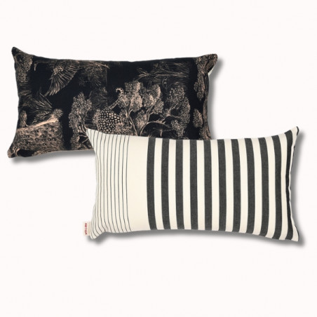 Issu de la collaboration entre Artiga et Thevenon, ce coussin biface 45 x 25 cm Sauvelade écru / Animalia incarne la rencontre entre le savoir-faire textile d'Artiga et l’excellence du design d’ameublement français.