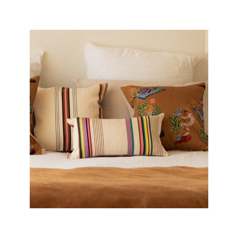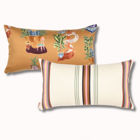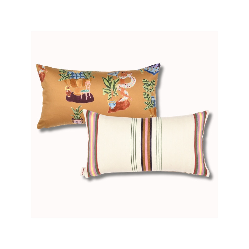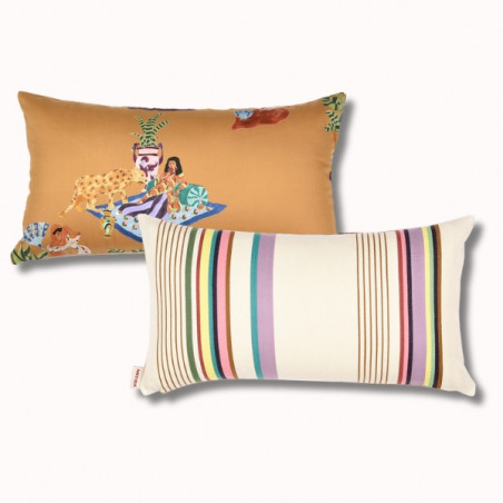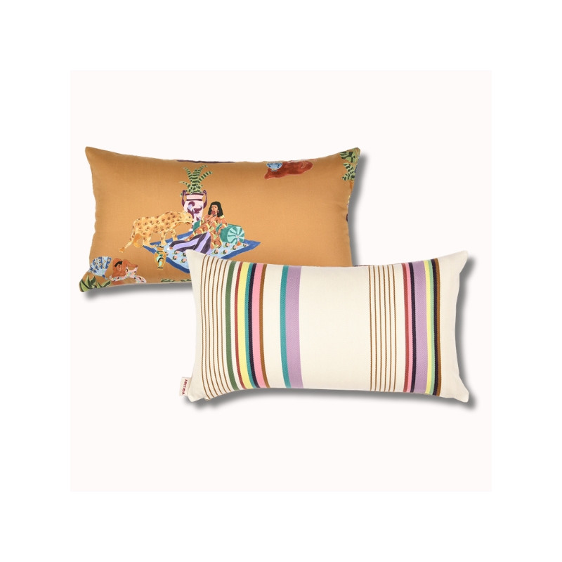 Le coussin biface 45 x 25 cm SORE / Paresse Méditerranéenne est une pièce décorative forte, née de la collaboration entre ARTIGA et THEVENON. Il associe deux univers textiles complémentaires pour créer un coussin élégant, expressif et résolument contemporain.