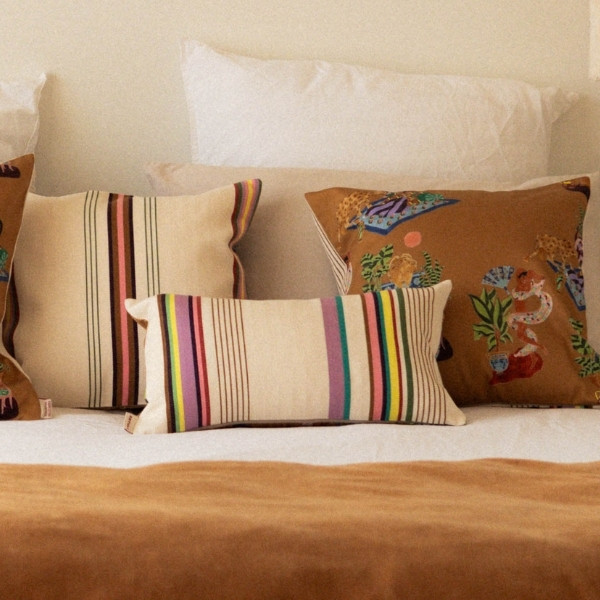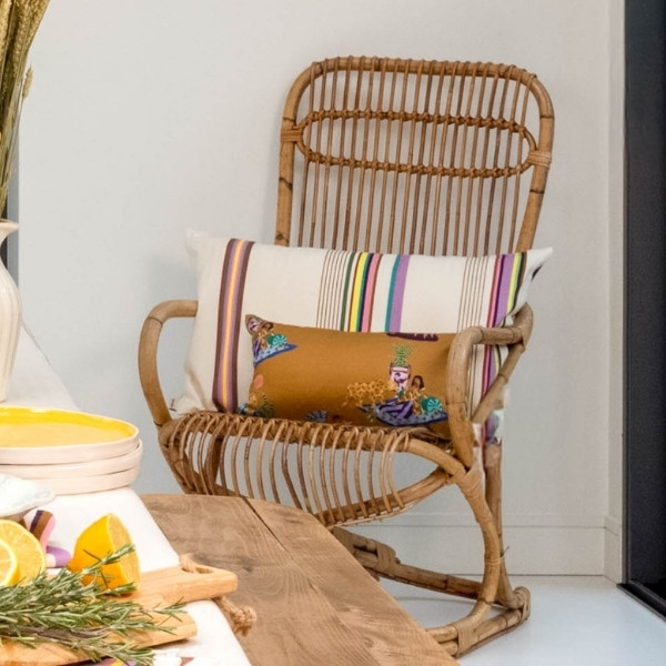 Le coussin SORE / Paresse Méditerranéenne s’inscrit dans une esthétique chaleureuse et naturelle, pensée pour les maisons de vacances, les intérieurs lumineux et les ambiances bohèmes chic. Il se marie parfaitement avec le bois, le lin, le cuir et les matières naturelles.