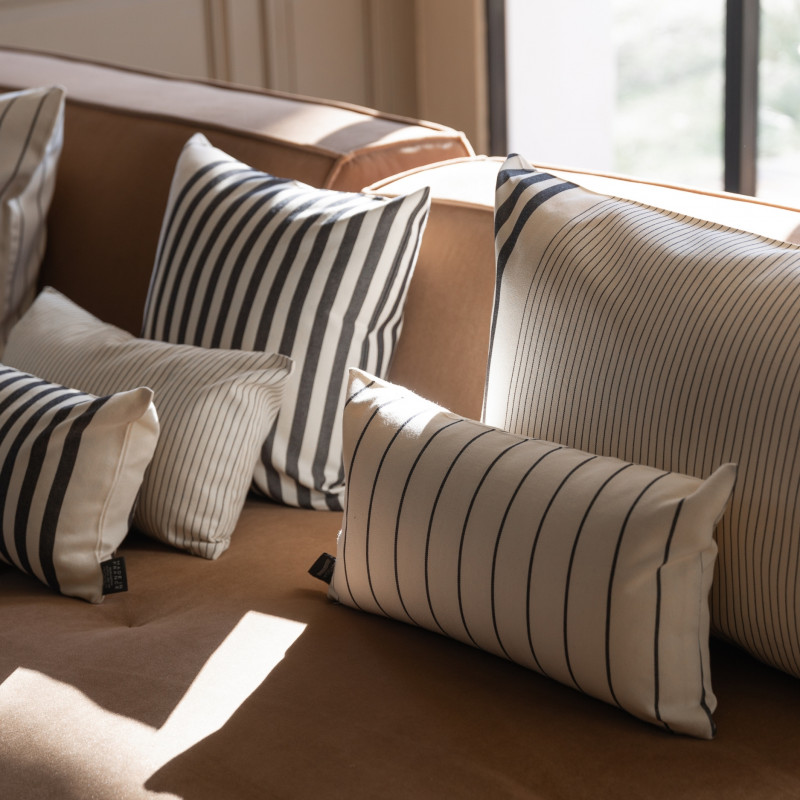 Les coussins Sauvelade carrés 40 x 40 cm, sont en tissu naturel 100% coton issu de l'agriculture biologique, créés et confectionnés dans notre atelier situé dans le Sud-Ouest, dans le respect des tissages traditionnels basques.
