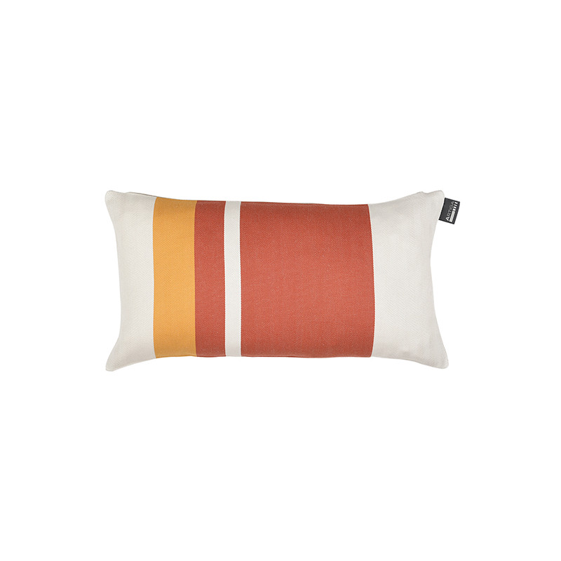 Les coussins Angoume rectangulaires petits modèles, 25 x 45 cm sont en tissu naturel 75% coton issu de l'agriculture biologique et 25% coton et autres fibres recyclées, créés et confectionnés dans notre atelier situé dans le Sud-Ouest, dans le respect des tissages traditionnels basques.