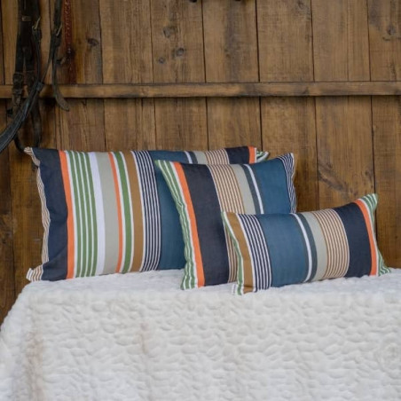 Avec ses rayures dynamiques aux tons froids relevés par des accents chaleureux, il devient l’accessoire idéal pour sublimer un canapé, un fauteuil ou un lit.