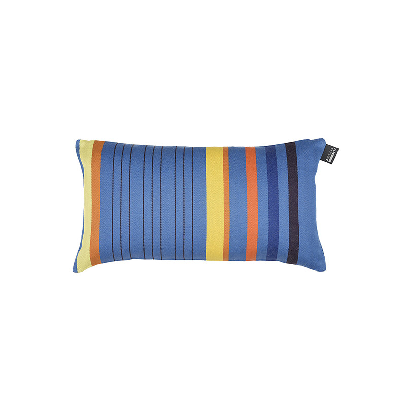 Les coussins Laurède rectangulaires petits modèles 25 x 45 cm, sont en tissu naturel 75% coton issu de l'agriculture biologique et 25% coton et autres fibres recyclées, créés et confectionnés dans notre atelier situé dans le Sud-Ouest, dans le respect des tissages traditionnels basques.