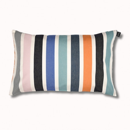 Le coussin Garlin rectangulaire, 70 x 45 cm, est en tissu naturel 100% coton issu de l'agriculture biologique, créé et confectionné dans notre atelier situé dans le Sud-Ouest, dans le respect des tissages traditionnels basques.