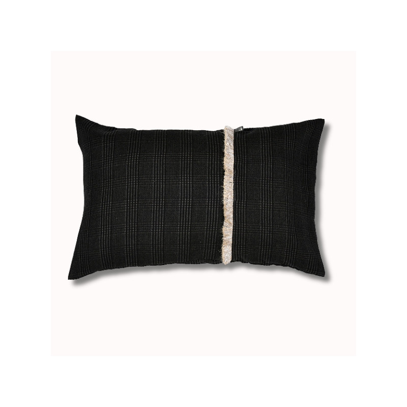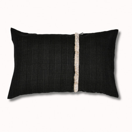 Notre coussin rectangulaire Ardoise, 70 x 45 cm, à franges, issu de notre nouvelle collection automne-hiver, est en tissu 44% acrylique 28% laine 28% viscose.