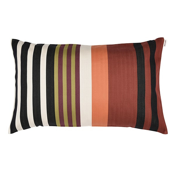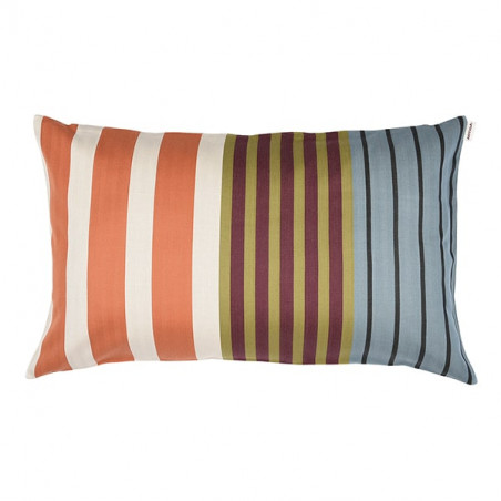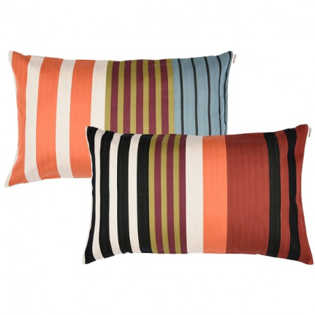 Le coussin rectangulaire 70x45 cm Artiga en toile Cazalis apporte une touche design et chaleureuse à votre intérieur. Ses rayures audacieuses mêlant vert olive, terracotta, bleu glacier, noir et écru offrent une harmonie unique et un style contemporain.