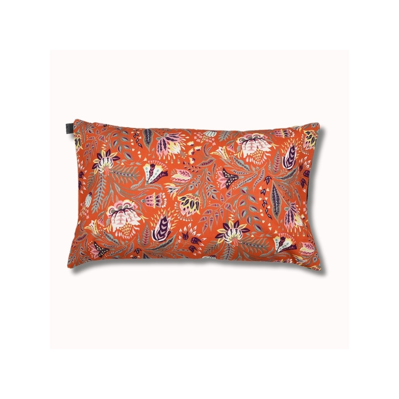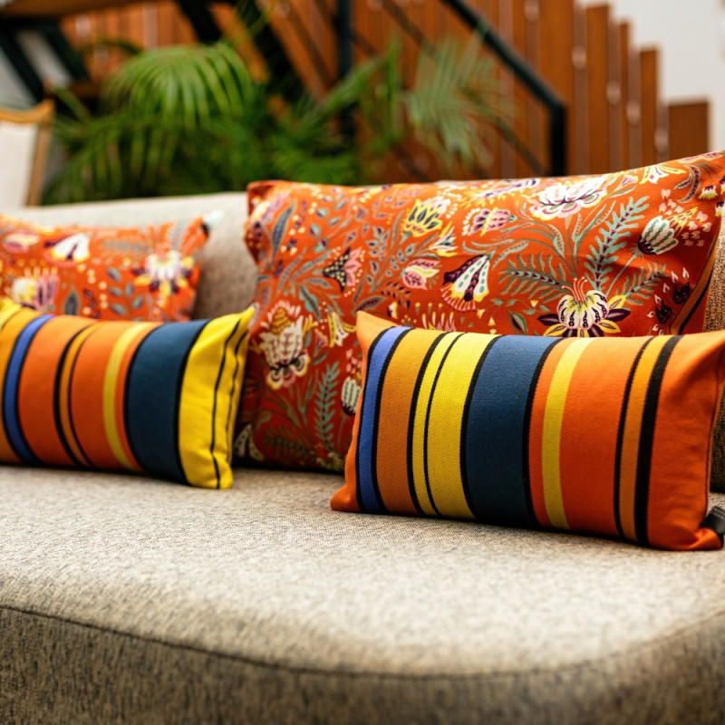 Les coussins Mouguerre/Fleurs rectangulaires 70 x 45 cm, sont en tissu naturel 75% coton issu de l'agriculture biologique et 25% coton tissés et autres fibres recyclées, créés et confectionnés dans notre atelier situé dans le Sud-Ouest, dans le respect des tissages traditionnels basques.