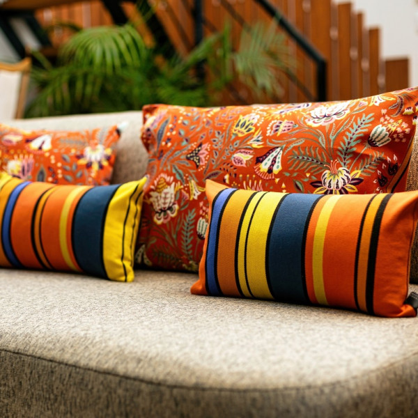 Avec des touches de couleurs rayées ou imprimées, personnalisez votre salon à votre goût. Posez simplement nos coussins colorés de forme carrée, rectangulaire ou mini sur vos canapés, fauteuils et lits.