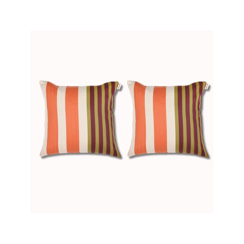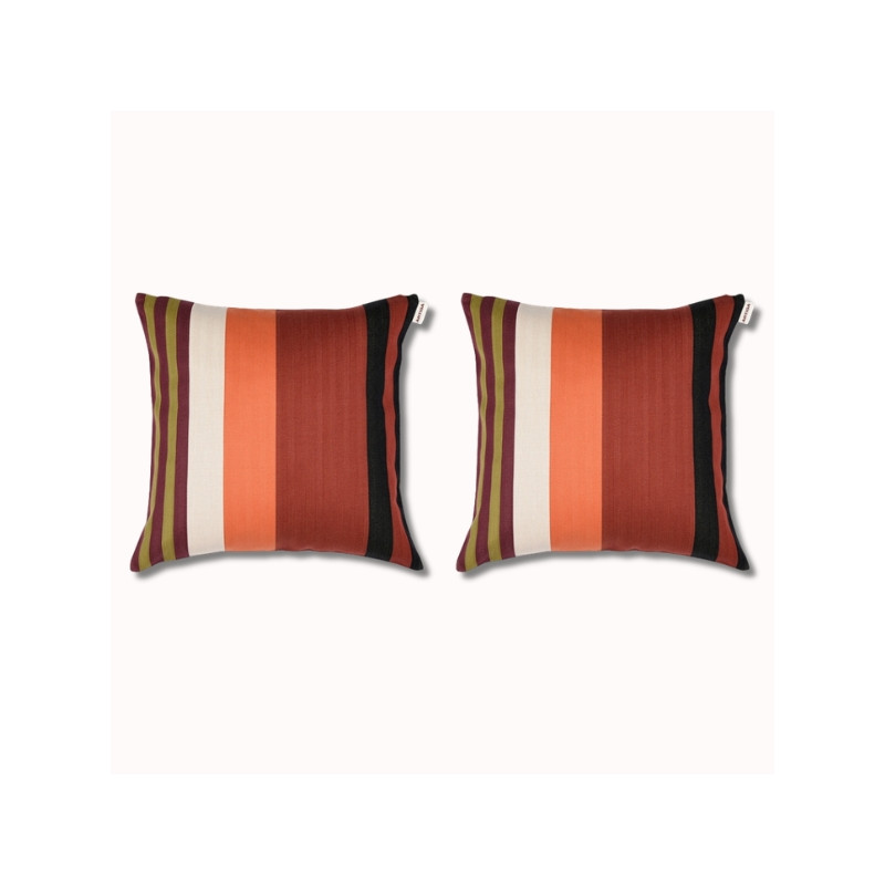 Affirmez votre style avec le duo de coussins Cazalis 40x40 cm, une pièce décorative qui mêle modernité et savoir-faire textile français. Avec leurs rayures colorées associant terracotta, vert olive, noir, écru et bleu glacier, ces coussins apportent du rythme et de la personnalité à votre intérieur.
