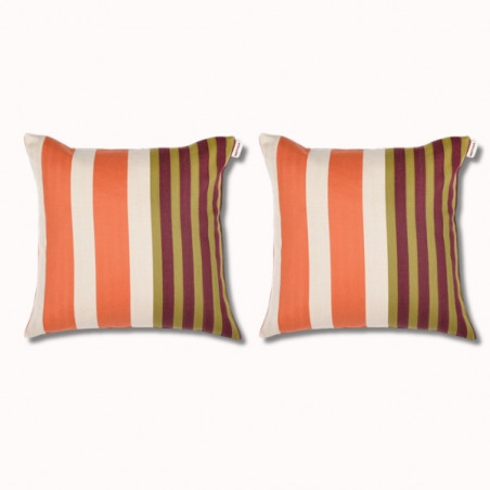 Apportez couleur et caractère à votre intérieur avec le duo de coussins 40x40 cm Cazalis. Confectionnés en 100 % coton et fabriqués en France, ils se distinguent par leurs rayures audacieuses et harmonieuses, idéales pour dynamiser votre décoration.