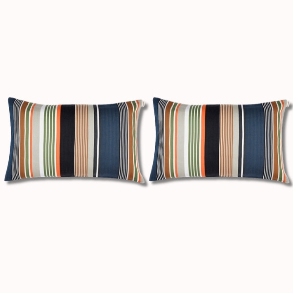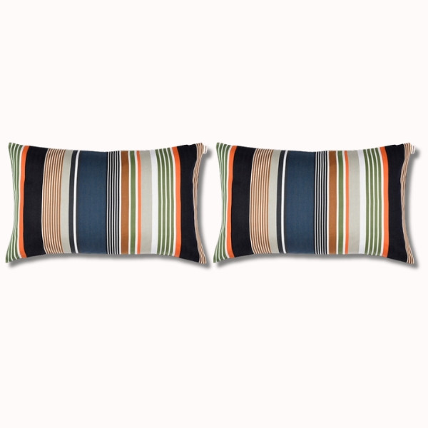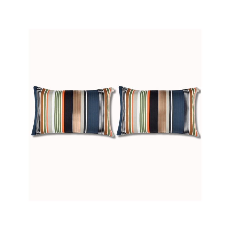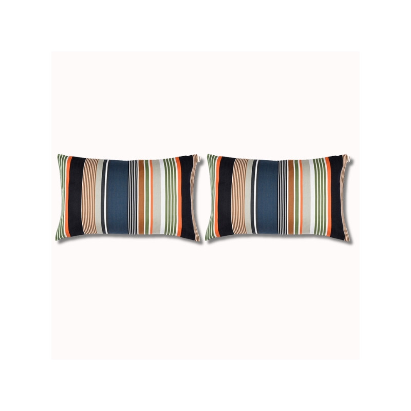 Affirmez votre style avec le duo de coussins 70x45 cm Argelos. Confectionnés en 100 % coton dans notre atelier à Magescq, ils séduisent par leurs rayures graphiques et contrastées, issues de la collection capsule Automne-Hiver 2025.