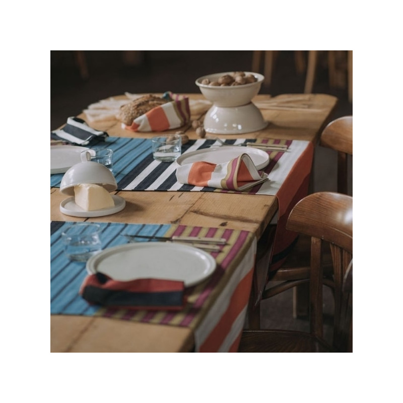 Apportez modernité et caractère à votre table avec le duo de jetés de table Cazalis. Confectionnés en 100 % coton et fabriqués en France, ils séduisent par leurs rayures audacieuses et colorées.