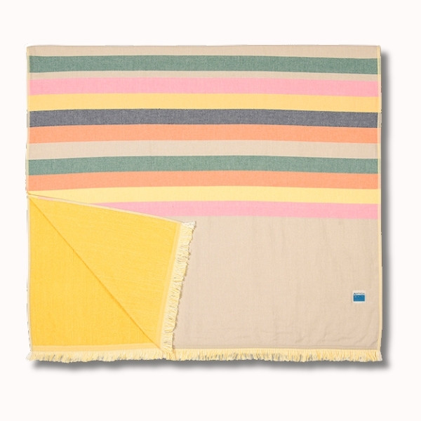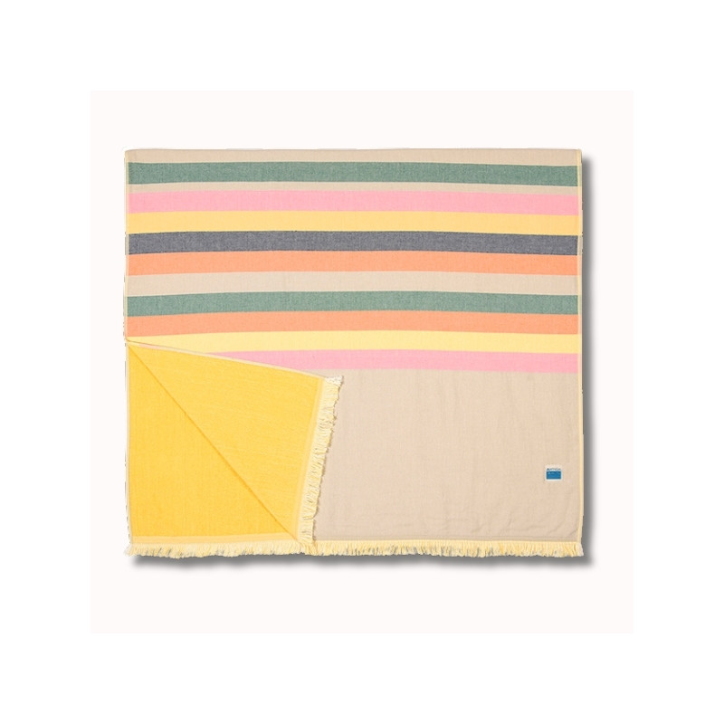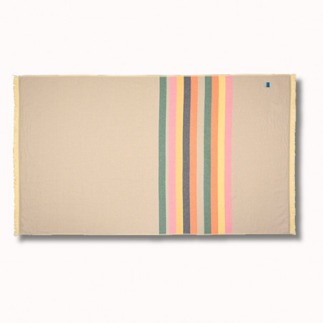 Fouta éponge 100% coton en 100 x 180 cm. Tissage spécial double face avec une face toile d'inspiration basque et une face éponge absorbante. Élégance naturelle, confort et praticité.