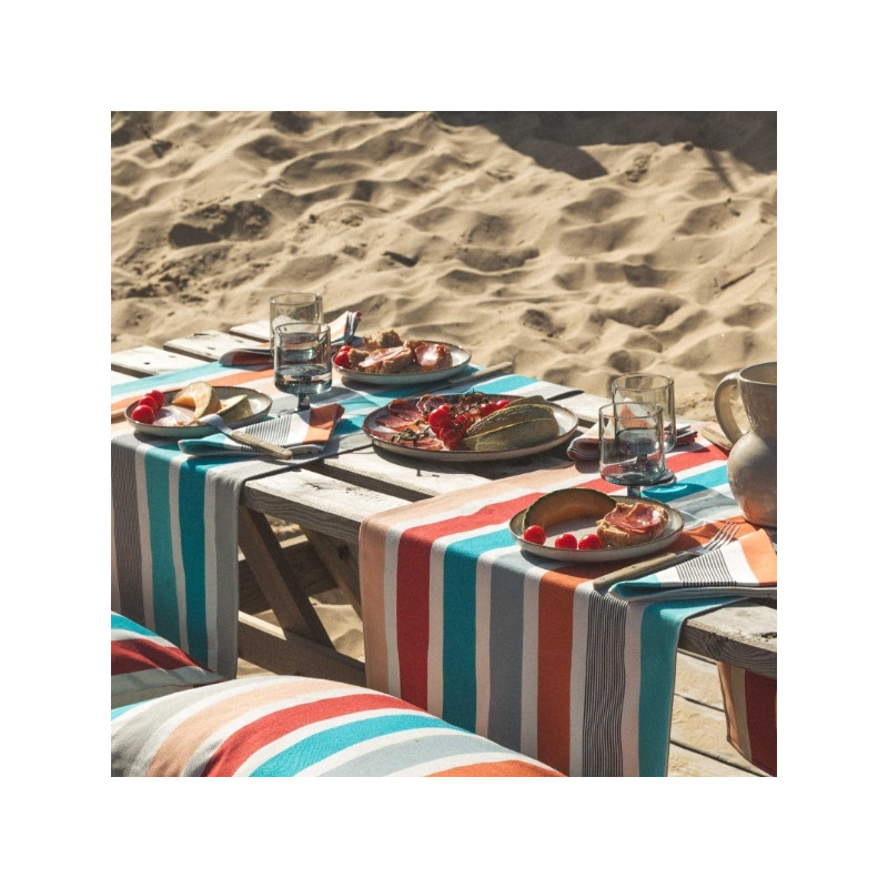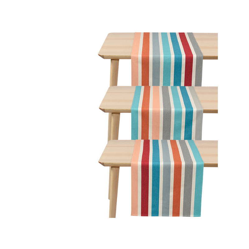 Il habille vos tables de façon pratique et décorative : toujours dans une large palette de couleurs rayées.