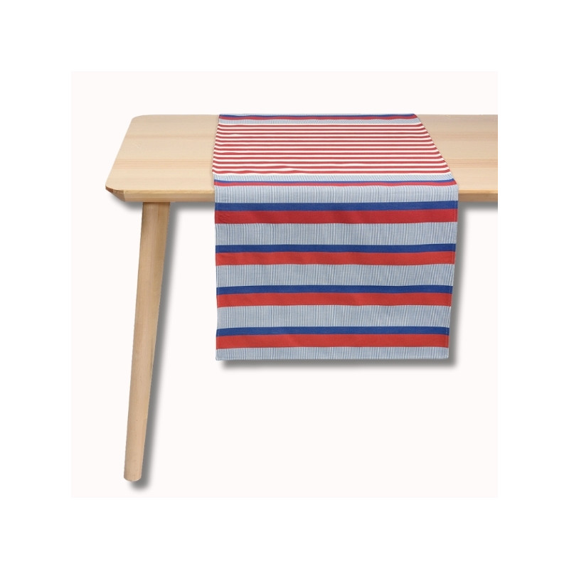 Confectionné en 100 % coton, ce jeté de table offre un toucher naturel et une belle tenue. Son tissage travaillé mêle différentes armures, signature de la toile Moustey, pour un rendu visuel riche et sophistiqué. Les rayures rouges et bleues, inspirées de l’univers méditerranéen, s’inscrivent pleinement dans l’univers La Française, symbole d’un chic intemporel et d’un art de vivre à la française.