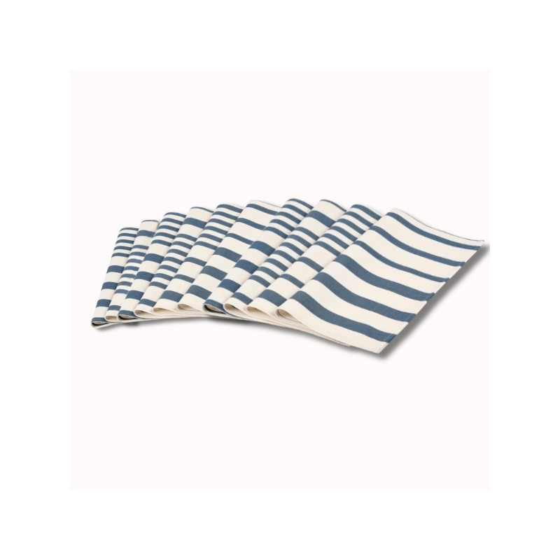 Leur motif à rayures bleues, inspiré des paysages marins de la Riviera, insuffle fraîcheur et raffinement à votre décoration de table. Ce lot de 10 est idéal pour les grandes tablées conviviales, familiales ou festives.