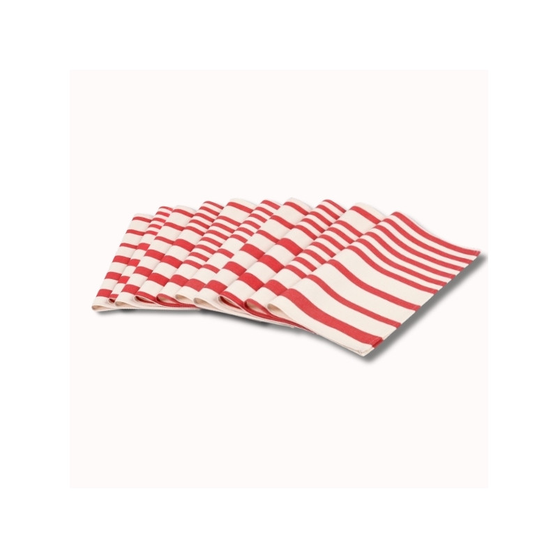 Leur motif à rayures rouges, inspiré de l’ambiance conviviale des terrasses méditerranéennes, insuffle une atmosphère chaleureuse et raffinée à votre décoration de table. Idéal pour les grandes tablées, ce lot de 10 serviettes harmonise élégance et convivialité.