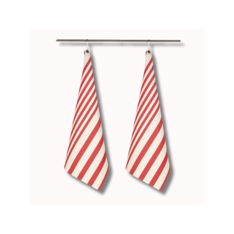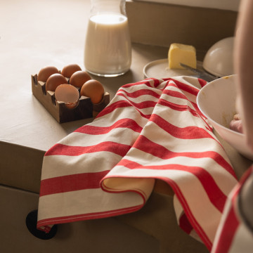 Leur motif à rayures rouges, inspiré des terrasses méditerranéennes animées, insuffle convivialité et élégance dans votre cuisine. À la fois fonctionnels et esthétiques, ces torchons allient praticité et raffinement.