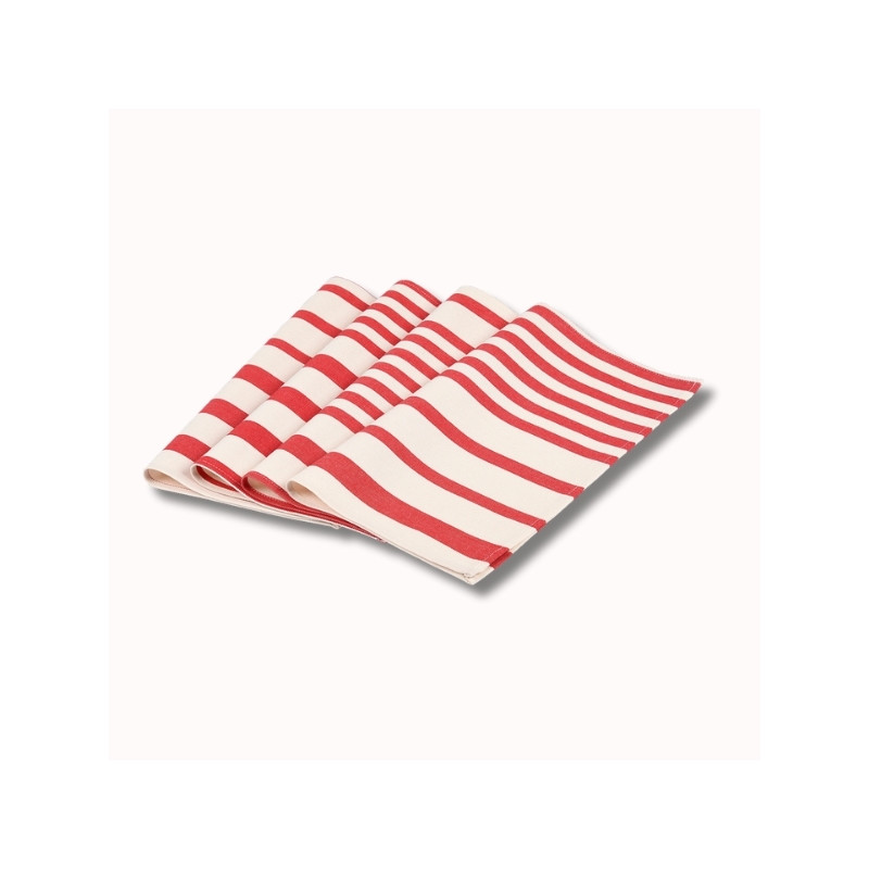 Leur motif à rayures rouges, inspiré des terrasses animées de la Méditerranée, donne chaleur et style à votre table. Ce lot de 4 serviettes est parfait pour partager un repas en famille ou entre amis dans une ambiance raffinée et accueillante.