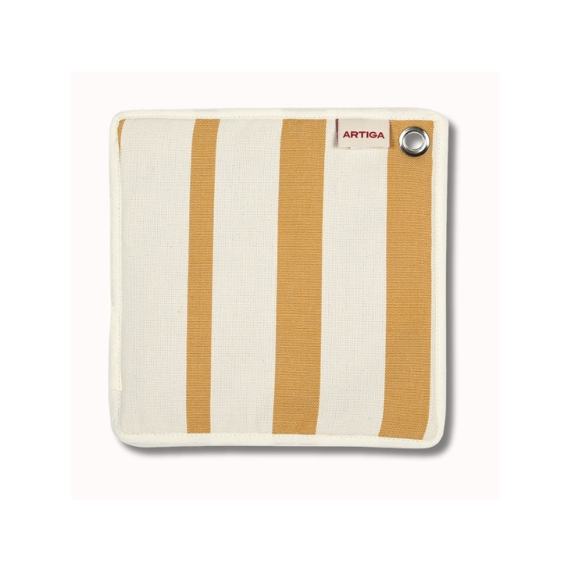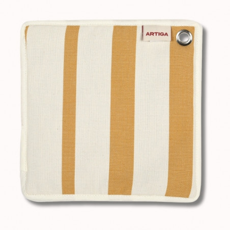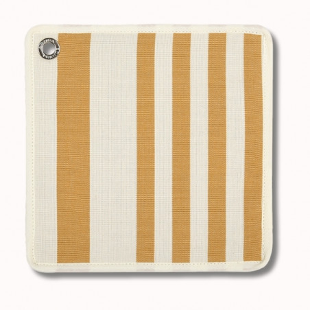 Réalisée en 100% coton, cette manique est confectionnée à partir de la toile Adour Curry, issue de l’univers Les Pins Salés. Ses rayures bicolores curry sur fond écru, aux tons chauds et doux, évoquent l’esprit des maisons de vacances, entre sobriété, lumière naturelle et élégance décontractée. Une palette intemporelle qui s’intègre facilement dans des intérieurs apaisés et raffinés.