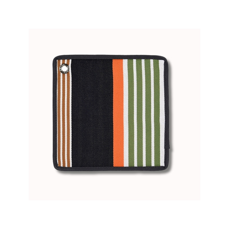 Son design à rayures audacieuses, alternant bleu profond, noir, vert, brun et orange vif, apporte une touche de modernité et d’énergie à vos instants en cuisine.