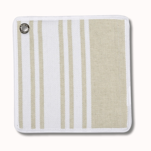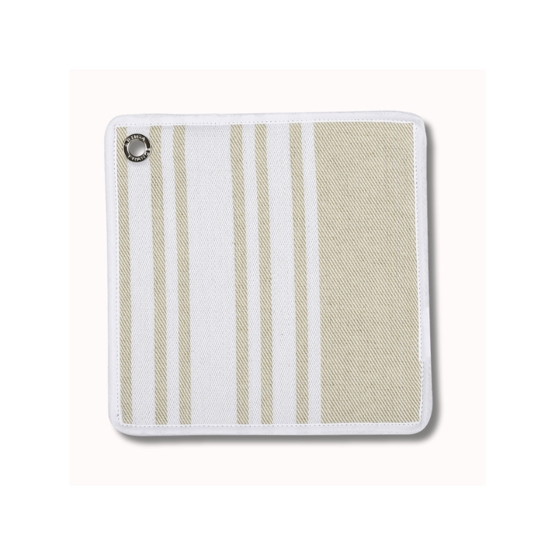 La manique CORDA BLANC s’inscrit dans l’univers Héritage, celui des des inspirations de toiles basques. Son design sobre et lumineux, composé d’un fond lin naturel rehaussé de rayures blanches, en fait un indispensable élégant pour les cuisines et tables de caractère, qu’elles soient du quotidien ou de réception.