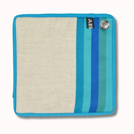 La manique Mauléon, 20 x 20 cm, est en tissu naturel 70% coton et 30% lin, créée et confectionnée dans notre atelier situé dans le Sud-Ouest.