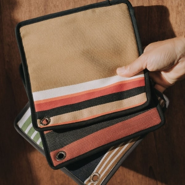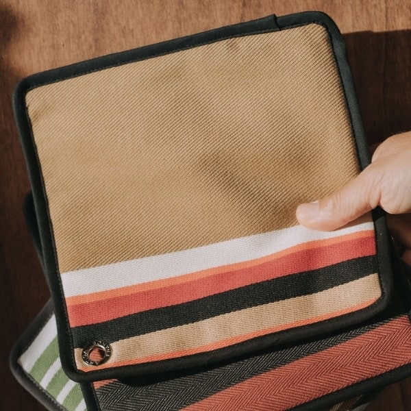 Réalisée en coton épais et résistant, doublée d’un isolant thermique, elle assure une parfaite isolation contre la chaleur.