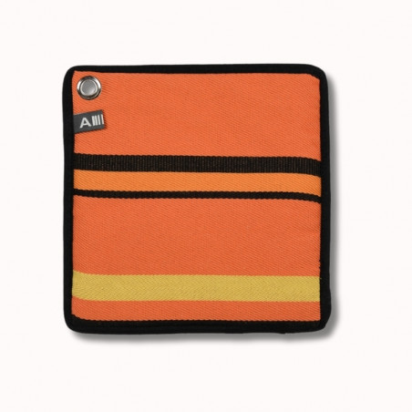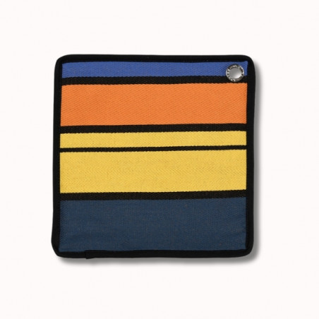La manique Mouguerre, 20 x 20 cm, est en tissu naturel 75% coton issu de l'agriculture biologique et 25% coton et autres fibres recyclées, créée et confectionnée dans notre atelier situé dans le Sud-Ouest.