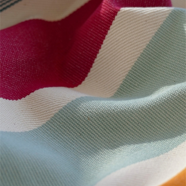 Confectionnée en 100% coton, cette toile naturelle offre une belle tenue, une texture souple et un toucher agréable. Sa large laize de 160 cm permet de multiples usages, aussi bien pour la décoration que pour l’ameublement ou la confection de linge de maison. Les rayures emblématiques, signature Artiga, structurent l’espace tout en apportant rythme et modernité, sans jamais alourdir la composition.