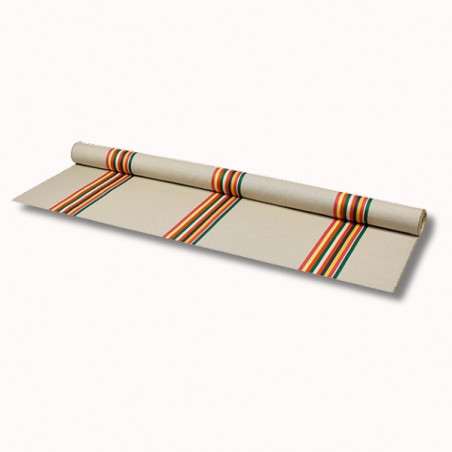 Ses rayures éclatantes en rouge, vert et jaune sur fond lin naturel apportent un charme basque traditionnel revisité dans une version estivale et lumineuse.