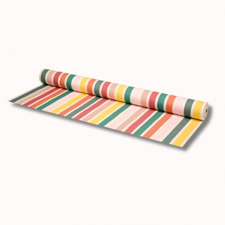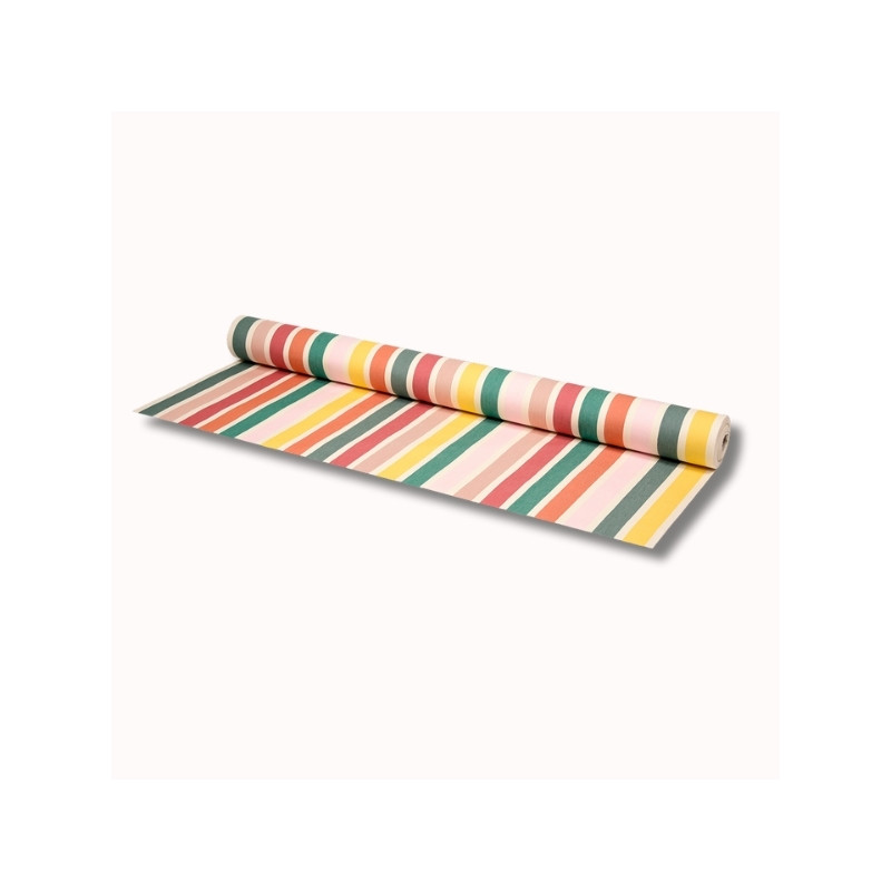 Le motif Garlin Melon se distingue par une palette chaleureuse et gourmande : framboise, melon, jaune d’or, rose pâle, associés à deux nuances de vert — vert gris et vert eucalyptus. Ces rayures colorées apportent un équilibre parfait entre énergie, douceur et fraîcheur, pour une décoration à la fois moderne et intemporelle.