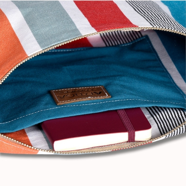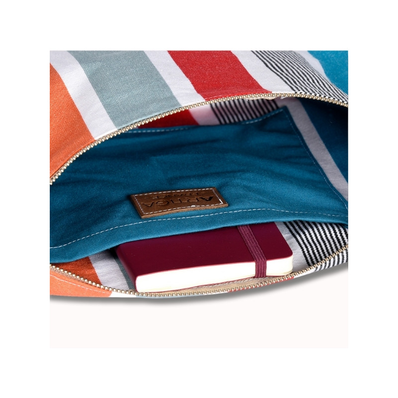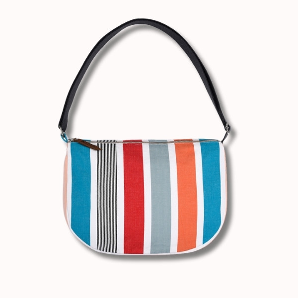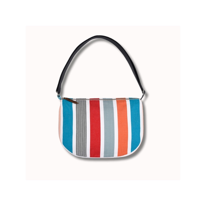 Le sac Bertille Garlin Pêche est en toile transat rayée, 100% coton.